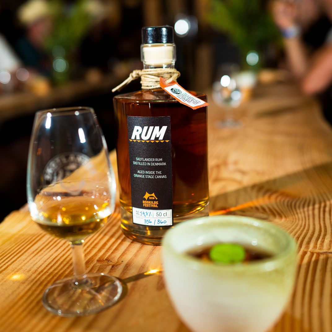 Rum 7 blev skabt til Roskilde Festival og lagret inde i den ikoniske Orange Scene. Fire sherryfade med økologisk rom stod vinteren over pakket ind i den originale teltdug fra scenen. Den høje luftfugtighed og temperatur skabte en næsten tropisk lagring, der gav rommen intens smag og høj koncentration. Den blev tappet ved fadstyrke omkring 60 %. Kun 360 flasker blev lavet, primært til kunstnere og gæster på festivalen.
